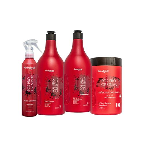 O Kit Pós Progressiva Profissional da Onixx Brasil é um tratamento completo para cabelos que passaram por processos químicos como coloração, descoloração, alisamento e uso frequente de chapinhas. Com shampoo detox, máscara nutritiva, condicionador hidratante e fluido reparador, o kit promove limpeza profunda, nutrição intensa, reposição de queratina e proteção total, prolongando o efeito liso e fortalecendo os fios contra quebras e quedas.